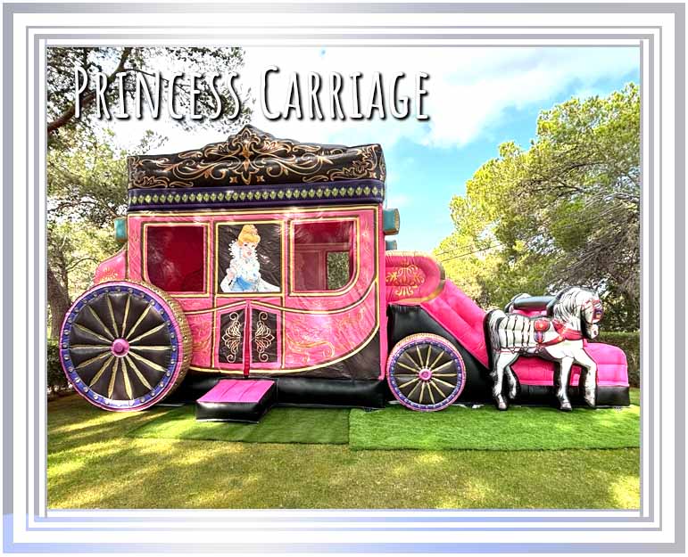 This Princess bouncy castle will keep the kids entertained for hours with it’s beautiful princess carriage and slide.