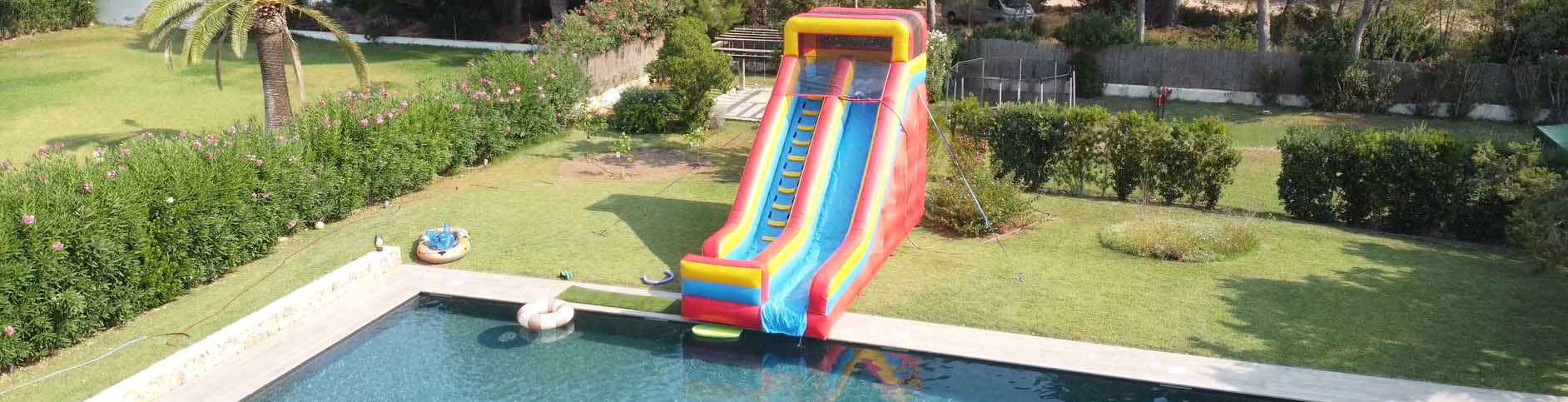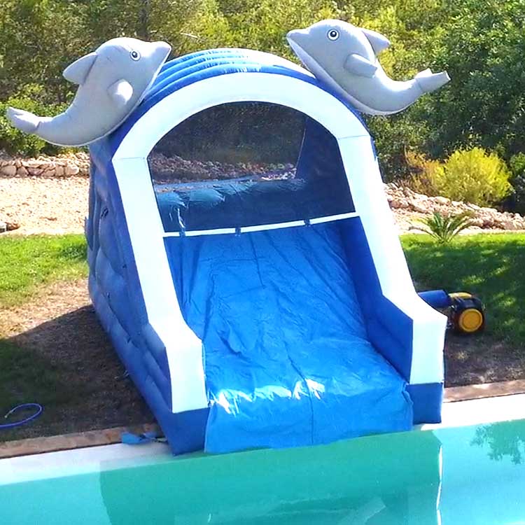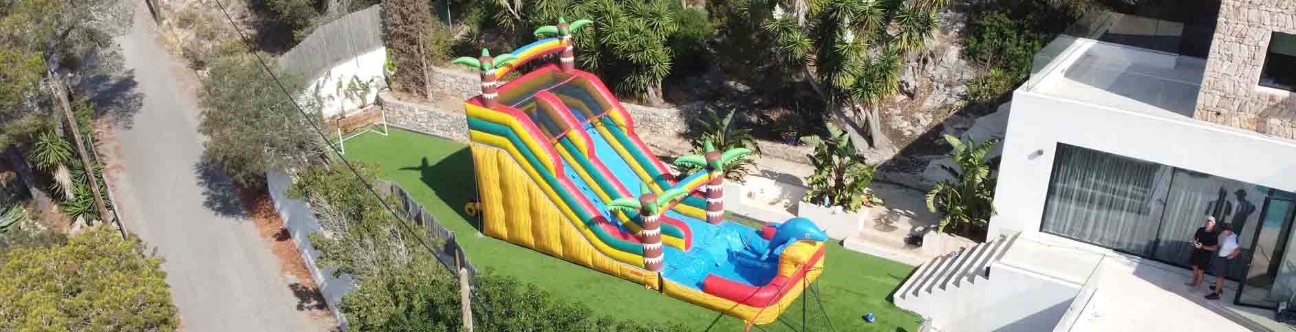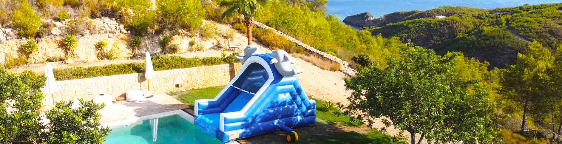 Let our incredible Dolphin water slide be a huge hit at your pool party here in Ibiza!
